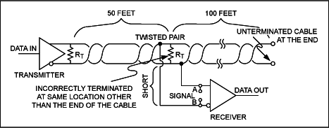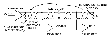 由于涉及到高頻率和距離,必須嚴密關注傳輸線效應。然而,關于傳輸線效應和正確端接技術的詳細討論超出了本應用筆記的內容范圍。因此,本文簡要討論與RS485相關的最簡單形式的匹配電阻。