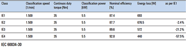 例如5.5kW的電動機,IE1電機的效率只有87.4%,而IE3電機的效率為89.6%,且損耗相對于IE2下降了21.2%,IE4電機的效率達到了92%,損耗更是下降了57.5%,運行效率和節能效果明顯。