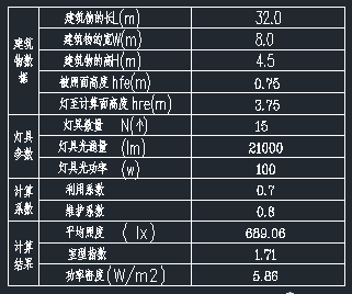 對于這個照度計算,數據只能取自圖紙,首先人工填入相關數據: