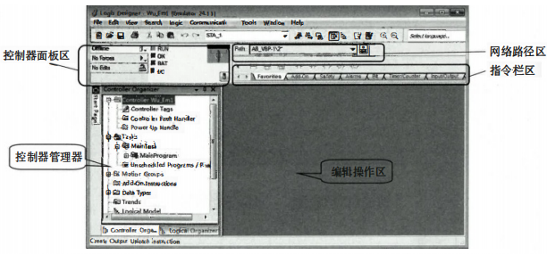 這是Windows風格的操作窗口,包括標題欄、菜單欄、工具欄、狀態欄、控制器面板區、 網絡路徑區、指令欄區、控制器管理器和編輯操作區等。