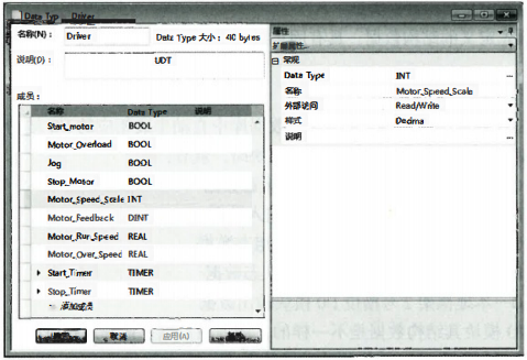 用戶自定義數據結構。用戶自定義數據結構(UDF)是在編程時為了某一控制任務組織相關數據而建立的數據結構,以便于數據的查找、監視和傳輸等。在建立數據結構的過程中,數據元素的定義順序與存儲器空間的占用有關。BOOL類型占1位,每建立一個BOOL元素,都會存放在剩余的空間上。如果空間不夠,再劃出新的32位字的空間。同理,SINT類型占8位,每建立一個SINT元素,都會存放在剩余的空間上。如果空間不夠,再劃出新的32位字的空間。其他類型以此類推。一個完整的用戶自定義數據結構UDF的大小一定是32位的整數倍。