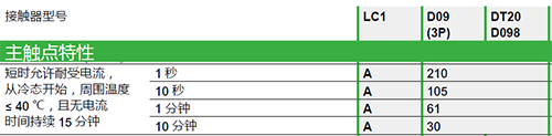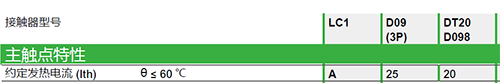 以LC1D09接觸器為例,其命名規則中09代表了使用類別下AC-3額定工作電流9A,通俗理解就是帶電動機負載的電流能力為9A(Ue≤440V),同理,AC-1額定工作電流25A,就是帶電加熱負載的電流能力為25A(Ue≤440V)。