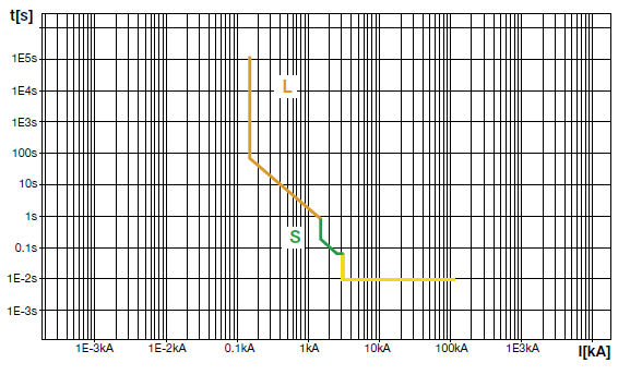 第二種類型的保護曲線是電子式脫扣單元保護曲線,常見于塑殼斷路器和框架斷路器,電子式脫扣單元可以實現長延時L、短延時S、瞬時I和接地故障G等保護。