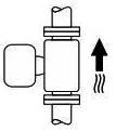B:測量脫氣介質時避免此安裝方向:存在氣體積聚風險。