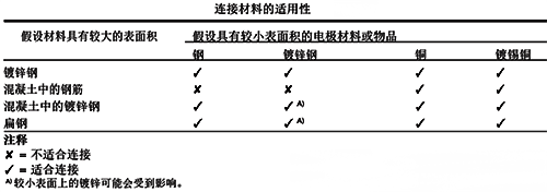 按GB/T16895.3的附錄C描述:“任何鋼質接地極不應直接從混凝土基礎進入土壤,除非接地極由不銹鋼制作或采用適當的防潮措施。表面熱浸鍍鋅或涂漆或其它措施可發現其防腐蝕的效果不夠好。在此建筑物周圍或附近宜采用非熱浸鍍鋅鋼材作附加的接地裝置,為使接地裝置本部分提供足夠的使用壽命。”