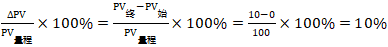 在本例中,過程變量的量程范圍為0~100,過程變量量程為100-0=100。過程變量變化占量程的百分比為: