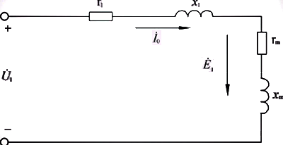 變壓器進入穩態后,勵磁電流將變得很小,根據KVL方程可得,U=-E+I0Z。這是變壓器在空載狀態下的相量關系,Z=r+jx,稱為漏阻抗,x為漏電感,x=ωL。-E=I0Zm,Zm=rm+jxm,rm為勵磁電阻,xm則為勵磁電抗,合起來的Zm則稱為勵磁阻抗。