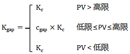 當Cgap=0時,過程變量進入范圍后操縱變量停止控制,此時也稱為死區PID。當Cgap=1/6時,過程變量進入范圍后以1/6的控制速度向設定值優化。這個設定值可以固定不變,也可以來自其他控制回路。變增益PID有效地提高了控制性能,降低了范圍內的優化速度。