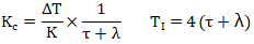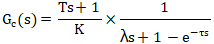 閉環控制不能消除純滯后時間,所以設閉環傳遞函數仍有不變的純滯后時間。閉環時間常數λ表示設定值階躍變化時過程的響應速度。期望的閉環傳遞函數(公式4):