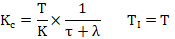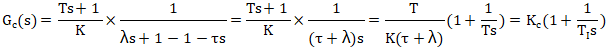 閉環控制不能消除純滯后時間,所以設閉環傳遞函數仍有不變的純滯后時間。閉環時間常數λ表示設定值階躍變化時過程的響應速度。期望的閉環傳遞函數為公式19: