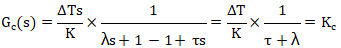 對積分純滯后對象使用純比例控制就能滿足主通道的控制要求,得公式25: