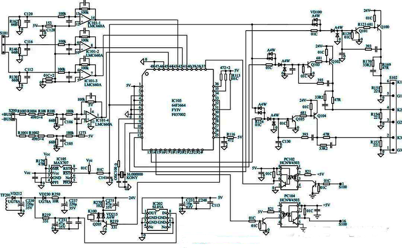 若測得S102端子脈沖哪怕只有一路是正常的,則基本可以判斷MCU工作是正常的,不正常的兩路在后級脈沖放大電路。