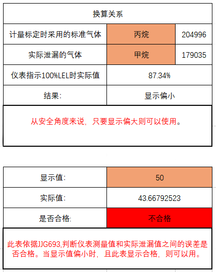 不同的介質在相同泄漏濃度時,探測器顯示數據并不相同