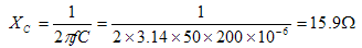 單級L形濾波器雖然電路簡單,在一般場合還是可起一定作用的。如本例自動平衡顯示儀表的RL=200Ω,CL=200μF、當干擾電壓為50Hz交流時,濾波電容CL的容抗: