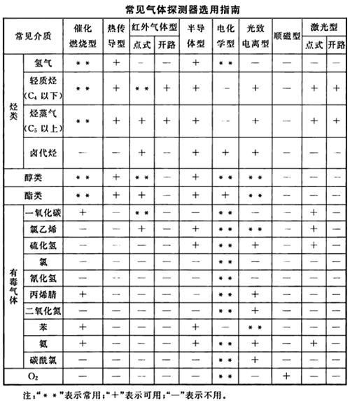 可燃氣體及有毒氣體探測器的選用,應根據探測器的技術性能、被測氣體的理化性質、被測介質的組分種類和檢測精度要求、探測器材質與現場環境的相容性、生產環境特點等確定。