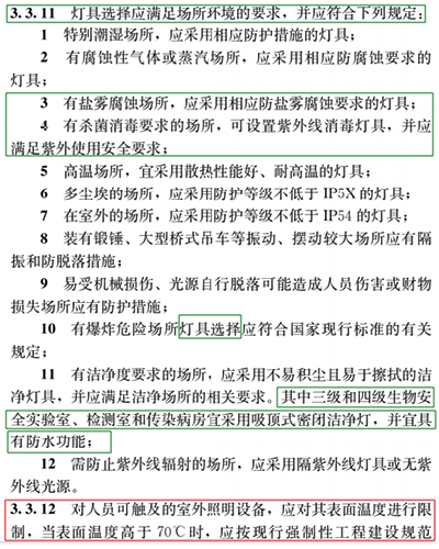 我們在選擇燈具時必須符合上面的這些條款,尤其新標準中3.3.12這一條,當我們選用傳統光源的燈具時,其表面溫度一般都會高于70度,所以我們一定要按照GB55016 《建筑環境通用規范》中的要求進行隔離保護。