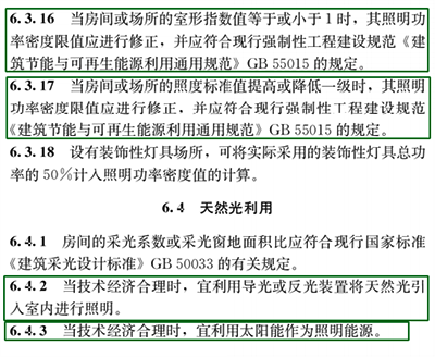 6.3 照明功率密度限值中現行值和目標值,比舊版標準中均有提升,這里就不再贅述。