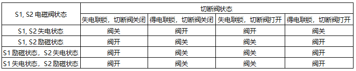 表1雙電磁閥狀態和切斷閥狀態對應值