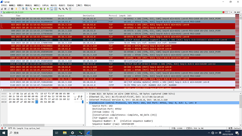 接著是843號報文,該報文的長度是60個字節,與MES側的17591號報文對應,因為MES側是在本機抓包,出口的報文54會被填充最小長度的以太網報文,于是在843出現了60個字節的長度應答。