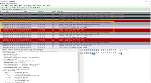 接著是查看 Port:49586這一組連接報文,MES側的18164到S7服務器側消失了,這報文丟失了嗎?網絡狀況完好的情況下到底時丟失了還是路由到甚至交換到其它地方?序號1011出現的TCP Out-Of-Order的原因表示1011的Seq=1比莫名其妙出現的1009號報文Seq=3的順序號小,這表明TCP通信出現亂序,可是亂序為什么出現在網絡狀況良好,且在連接階段呢?
