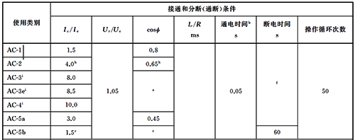 圖3 接觸器的使用類別(部分)