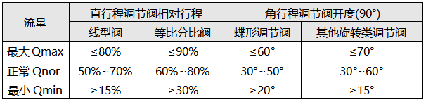 在《自動化儀表選型設計規范》HG/T20507-2014中調節閥開度推薦如下范圍:
