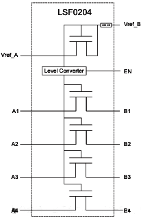 LSF系列由雙向電壓電平轉換器組成,工作電壓范圍為0.8至4.5V(Vref_A)和1.8至5.5V(Vref_B)。該范圍允許在無需方向端子的情況下,在開漏或推挽應用中進行0.8至5.0V的雙向電壓轉換。LSF系列支持最高100MHz傳輸速度的電平轉換應用。