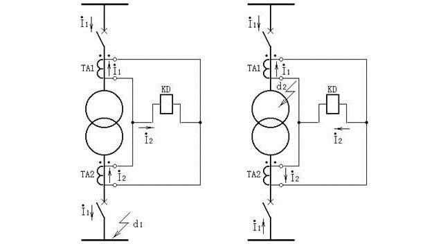 當變壓器內部,如圖20b中d2點故障時,流入差動繼電器的電流為變壓器兩側流向短路點的短路電流(二次值)之和。