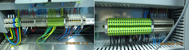 設置主柜的主接地銅排,截面積30-50mm2左右,采用壓接接觸。接地端子排應采用短接片短接,并用粗短接地線連接至主接地銅排。