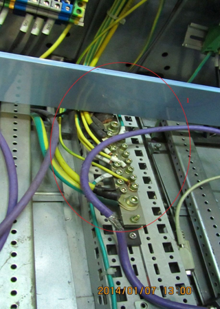 3、柜體進線電纜沒有電纜架抱箍固定,亦沒有屏蔽接地