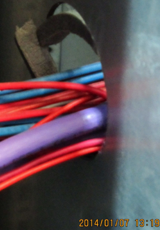 3、穿墻開孔,未使用橡膠護圈保護,致使線纜直接與鋒利的開孔邊緣接觸