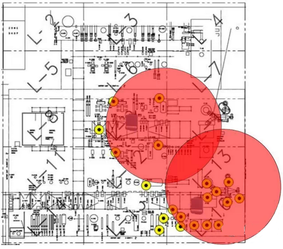 如圖2是一個簡單的設計實例。在工藝配置圖上,網絡是針對一個工藝單元,已放置4臺WirelessHART無線現場設備與網關。圍繞網關的圓圈代表網關有效范圍。在這個例子中,我們看到了在網關的有效范圍內僅有4臺設備。雖然達不到最少5臺設備的規則的要求,但從圖上看,4臺WirelessHART無線現場設備離圓圈的邊緣較遠,離網關的距離較近,都可以直接與網關通信,這4臺設備可以互為鄰居,所以這個網絡仍然可以實現良好的技術特性,對于可靠性和可添加更多的新無線現場設備來說,它也是最佳的。