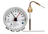 雙金屬溫度計適用于中、低溫度測量(-80~500℃),具有防腐耐振、直觀易讀、安全可靠、結實耐用的優點,配合合適的溫度計套管可以應用在有振動或易受沖擊的場合。石化和化工領域絕大部分的就地溫度測量均采用雙金屬溫度計,配上電接點還可實現溫度信號的遠距離傳輸